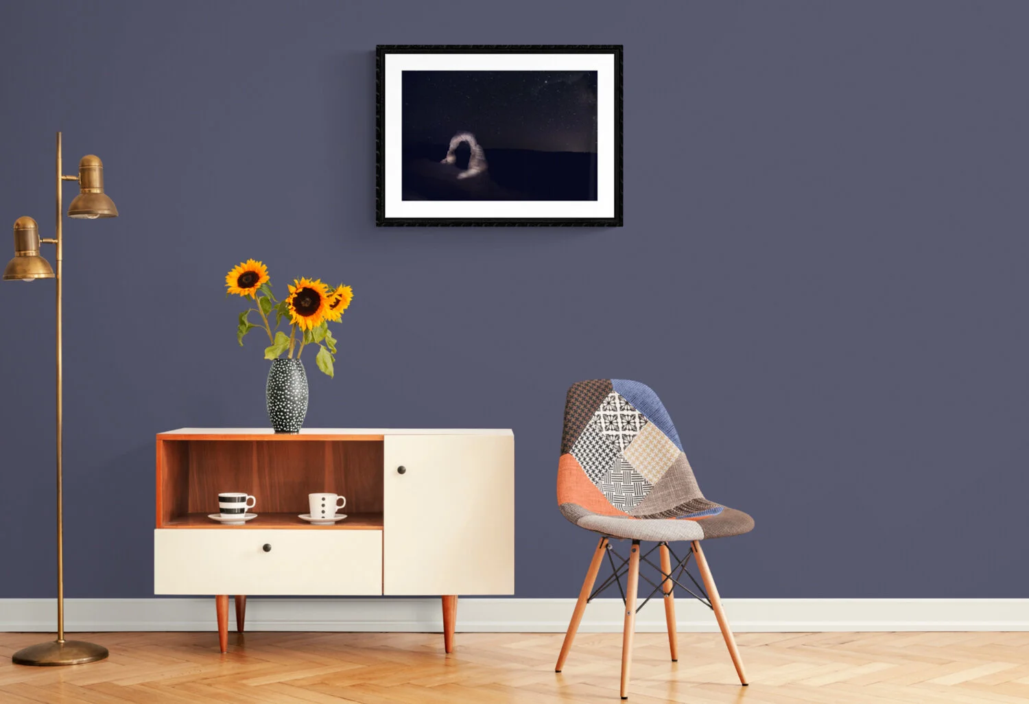 The frame of the artwork has more to do with complimenting the artwork than matching your space. All my artwork listed here compliments well with a black frame and thus will fit your space to its truest self.