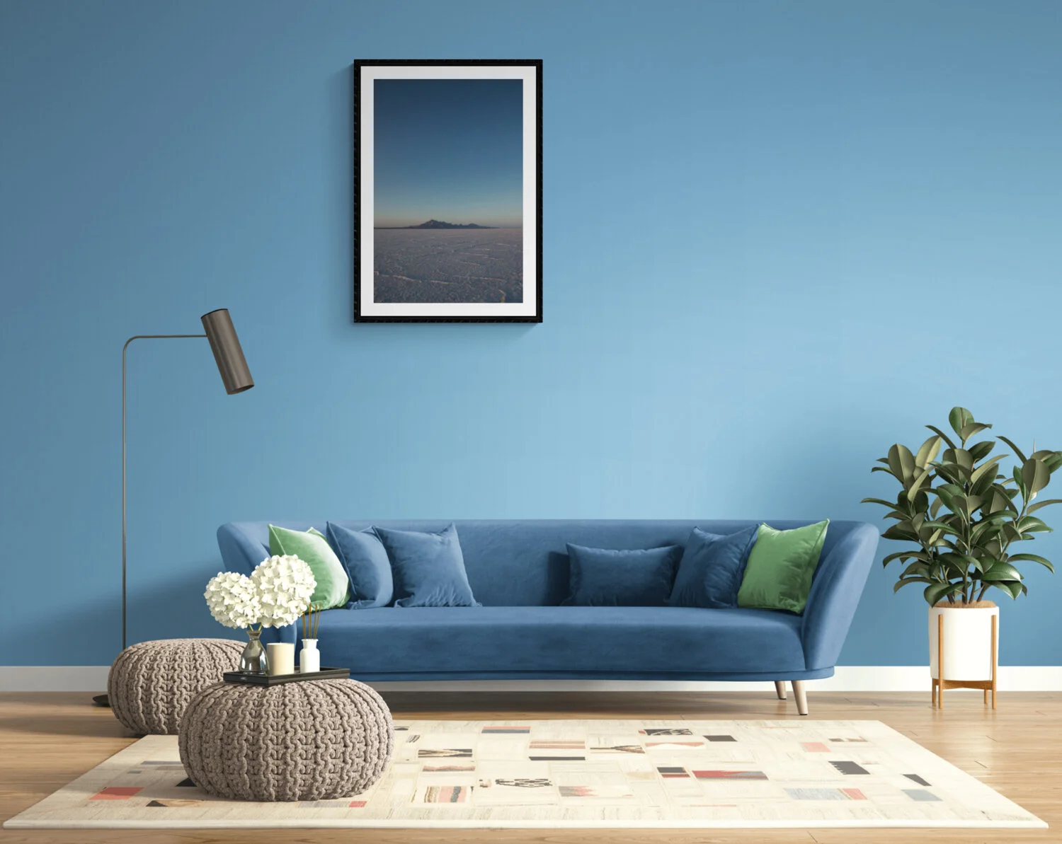 The demo room illustrations are provided under each print product to give you a perspective of which size best fits your space. If you are unsure about the size, please contact Arif Minhaz to book a consultation before you make your purchase here.